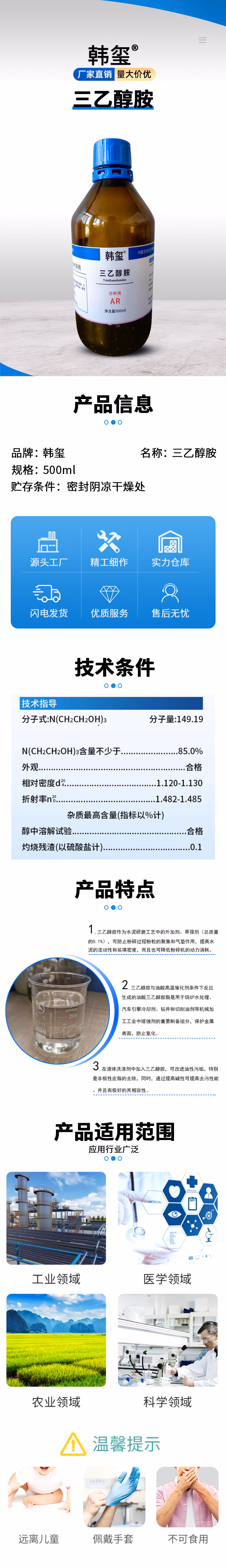 三乙醇胺AR500ml/瓶 88元/瓶