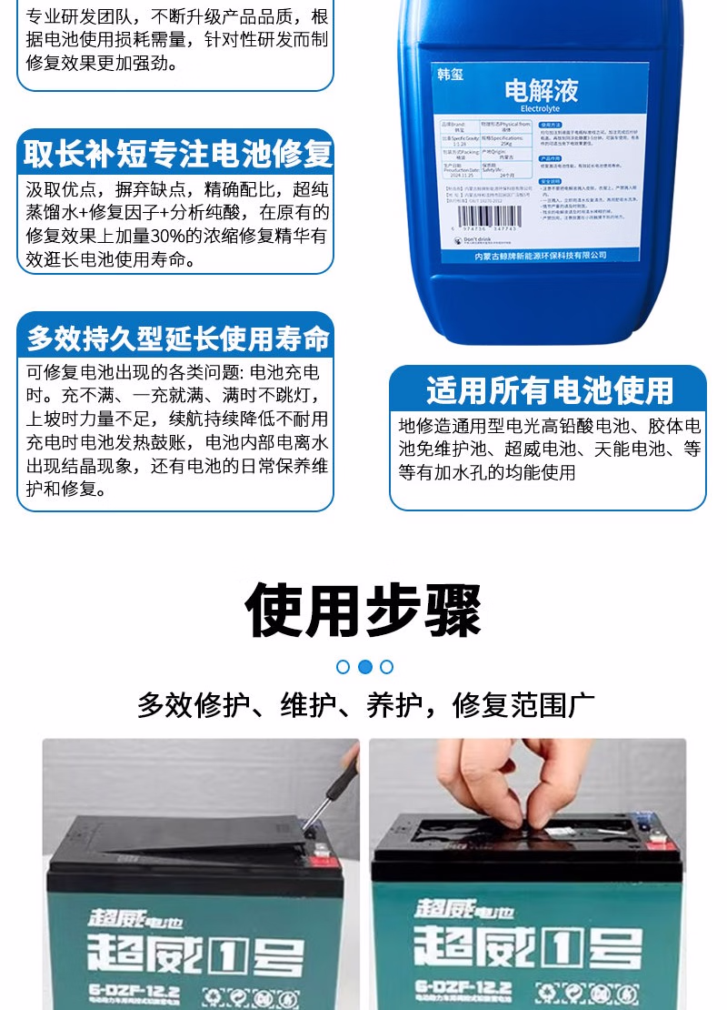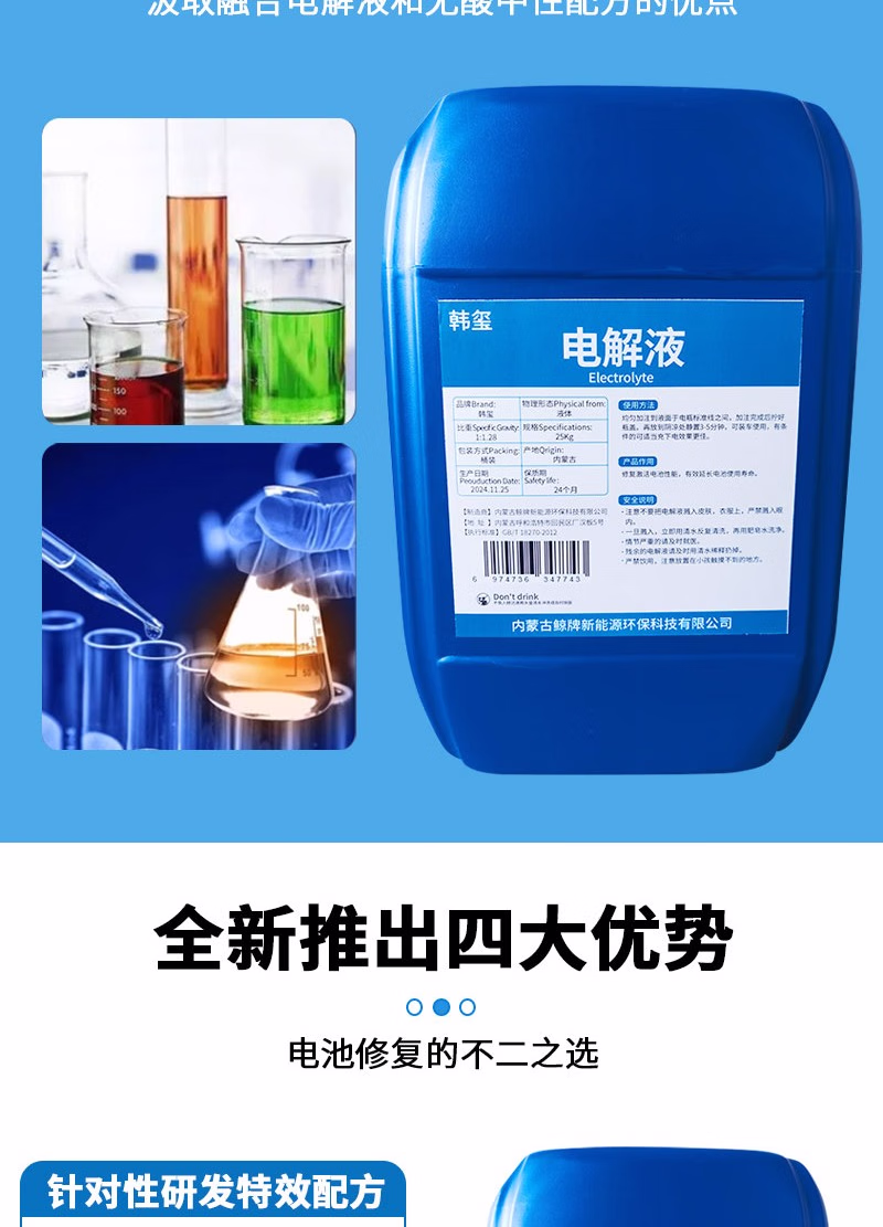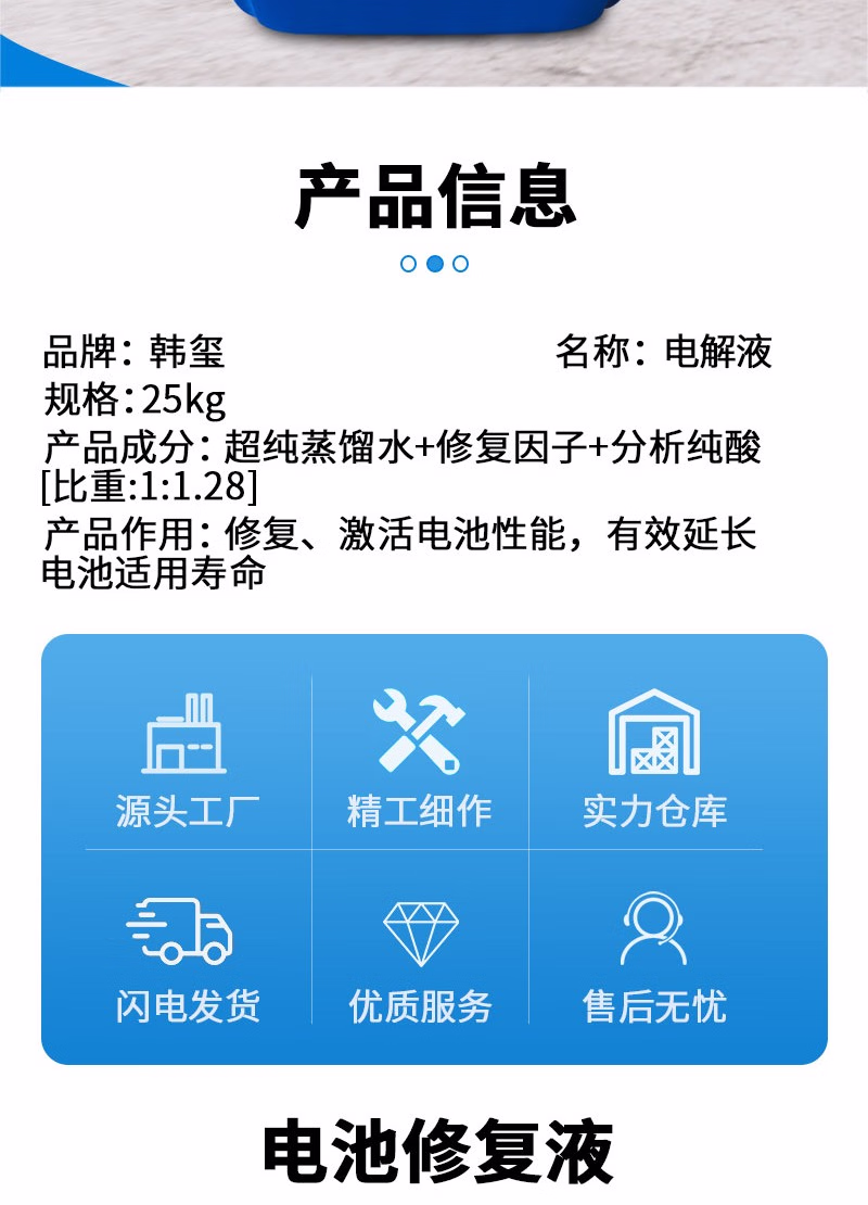 电解液 电池修复液 汽车叉车电瓶补充液12V通用 25kg/桶