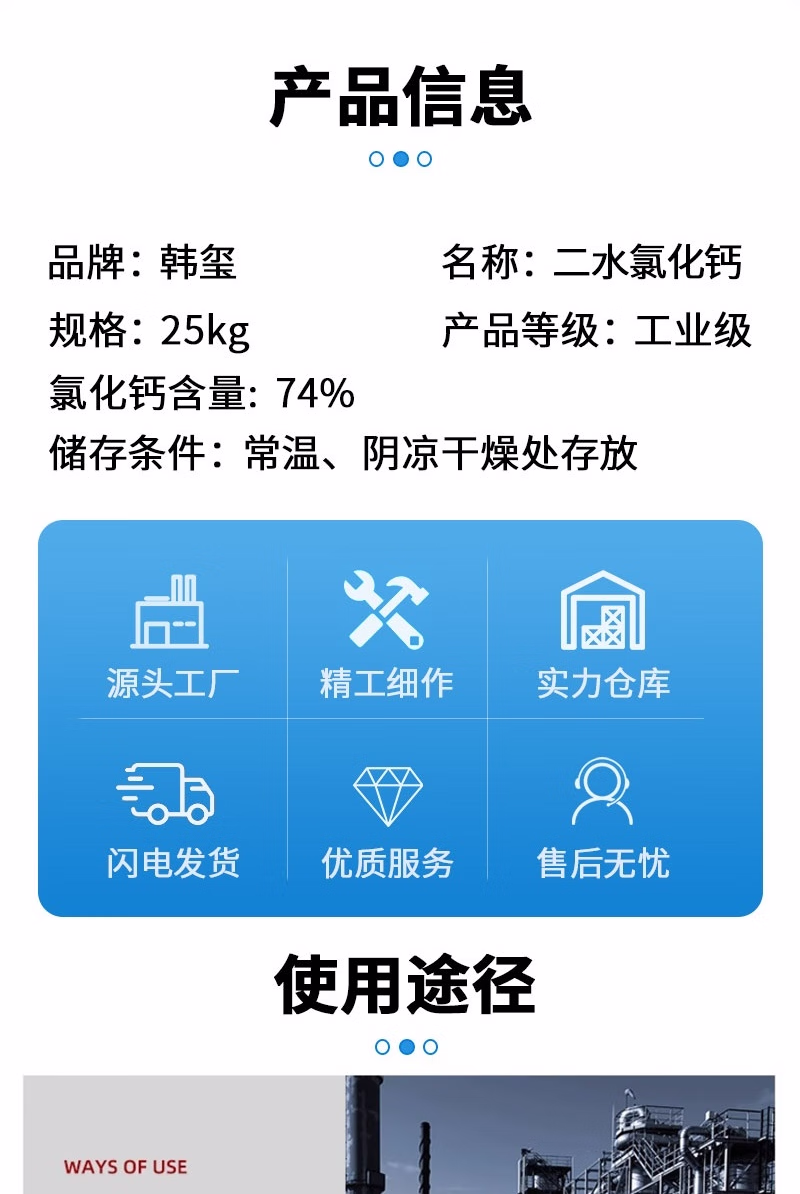 二水氯化钙 含量74% 融雪剂 干燥剂 25Kg/袋
