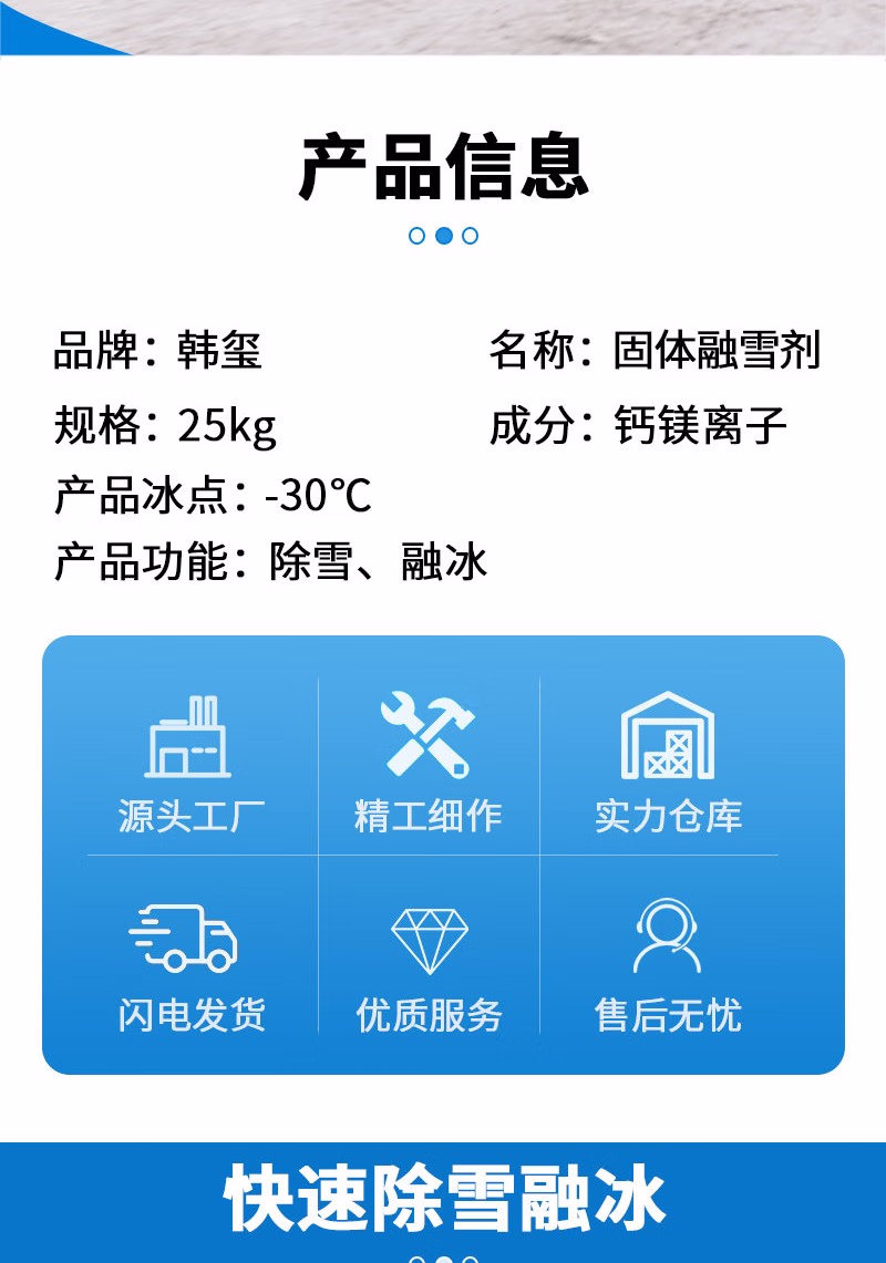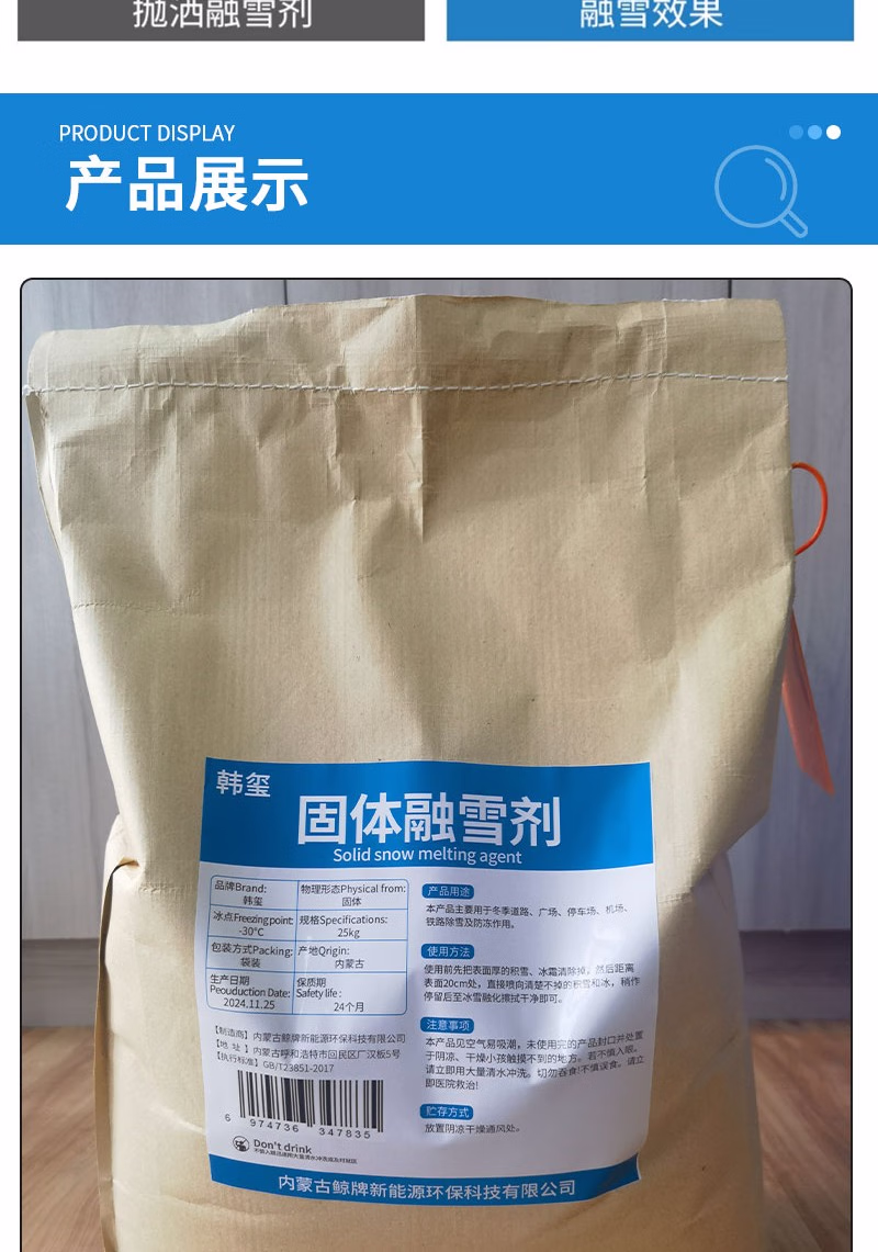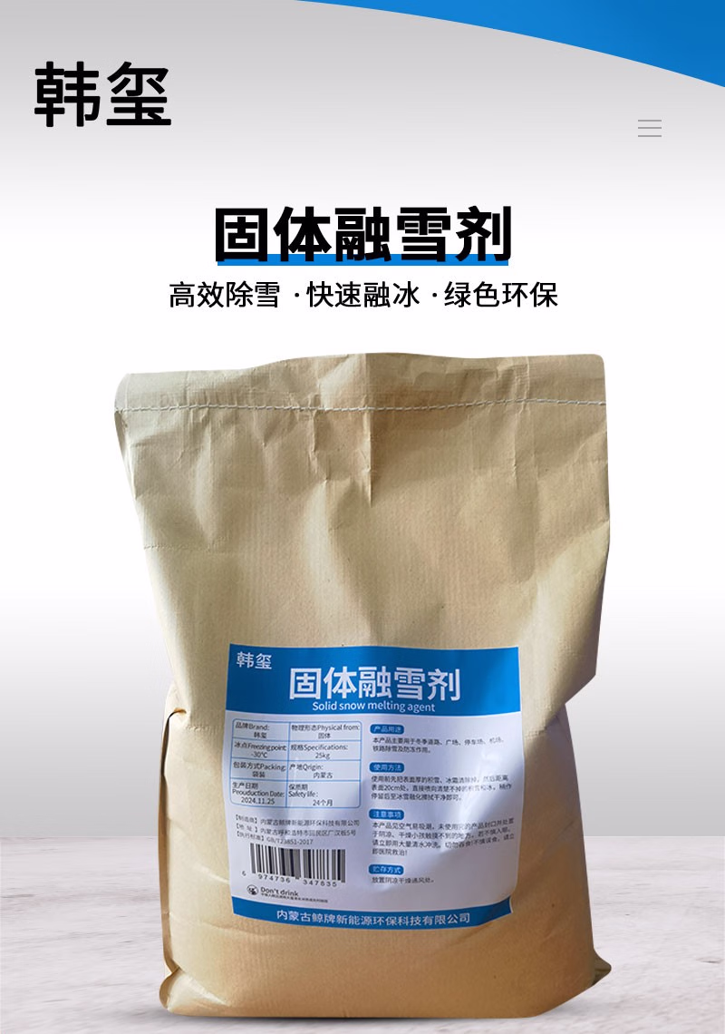 固体融雪剂 环保融雪剂 融雪融冰 -30℃ 25Kg/袋