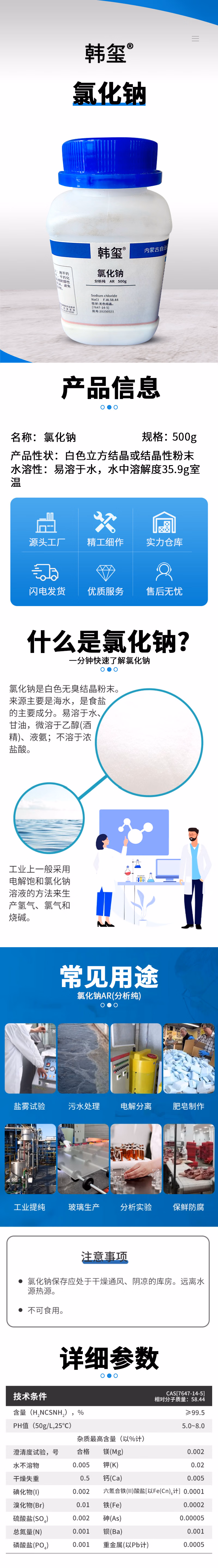 氯化钠 AR500g/瓶 18.8元/瓶