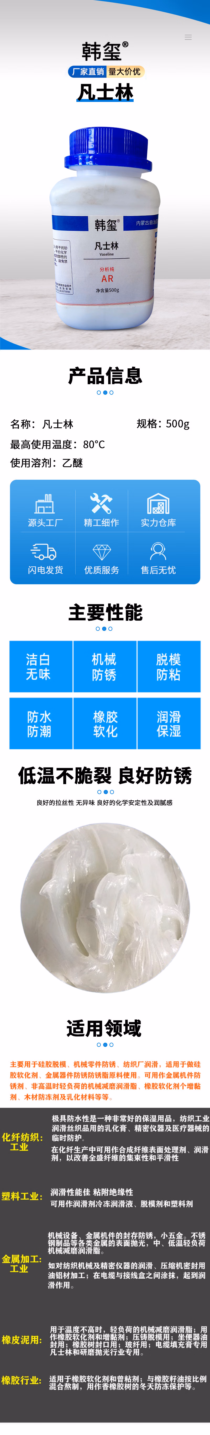 凡士林AR分析纯 500g 瓶 48元/瓶