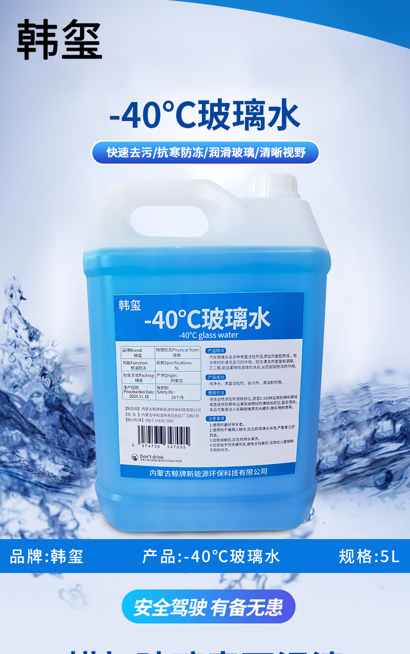 -40℃玻璃水 汽车玻璃水 防冻玻璃水清洗剂 5L/桶