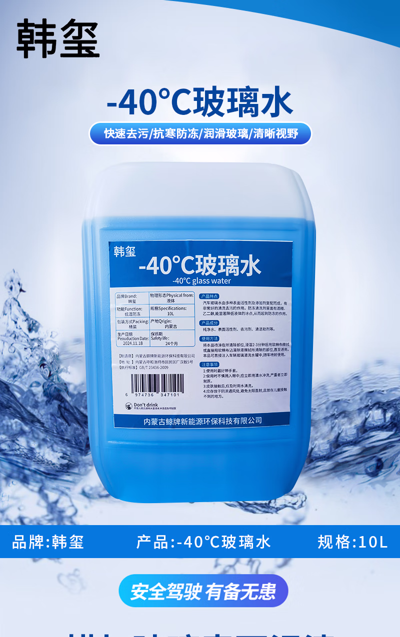 -40℃玻璃水 汽车玻璃水 防冻玻璃水清洗剂 10L/桶