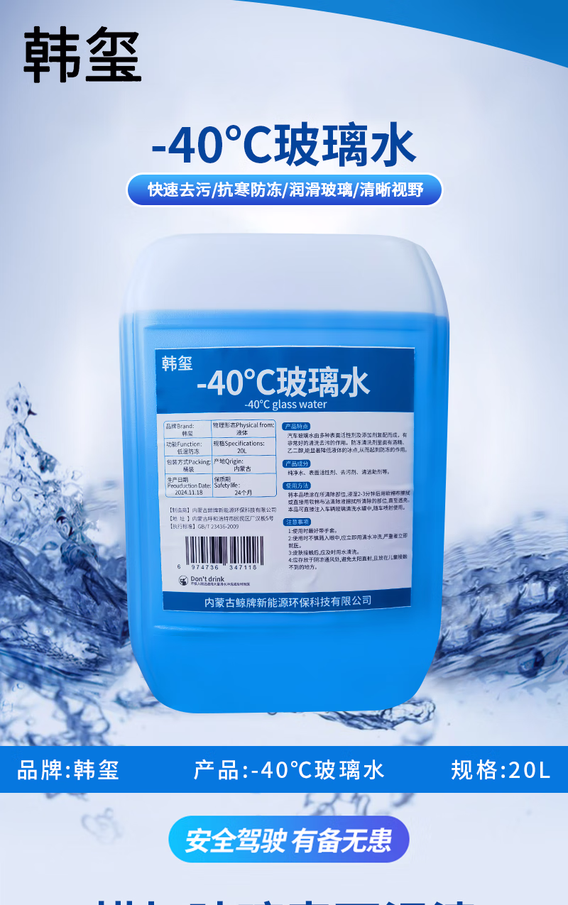 -40℃玻璃水 汽车玻璃水 防冻玻璃水清洗剂 20L/桶