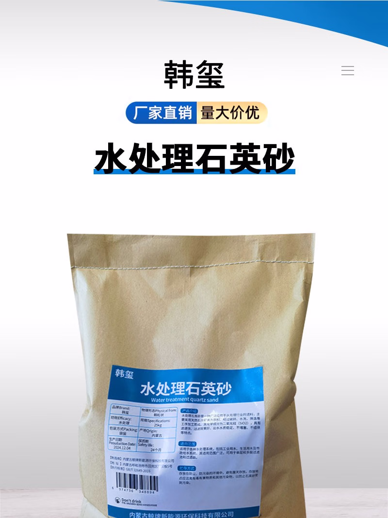 水处理石英砂 净水设备石英砂 规格备注 25Kg/袋
