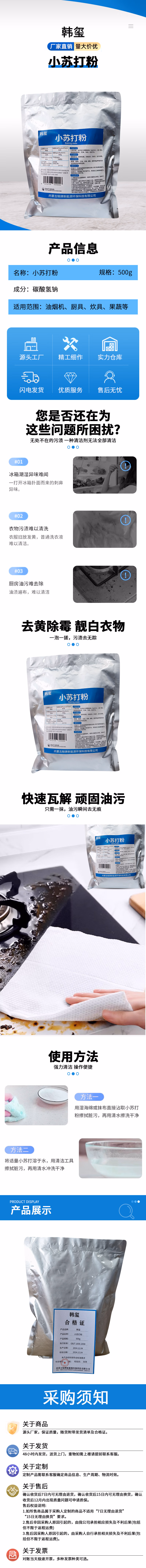 小苏打粉 清洁去污 洗衣服除垢厨房去油污 500g/袋