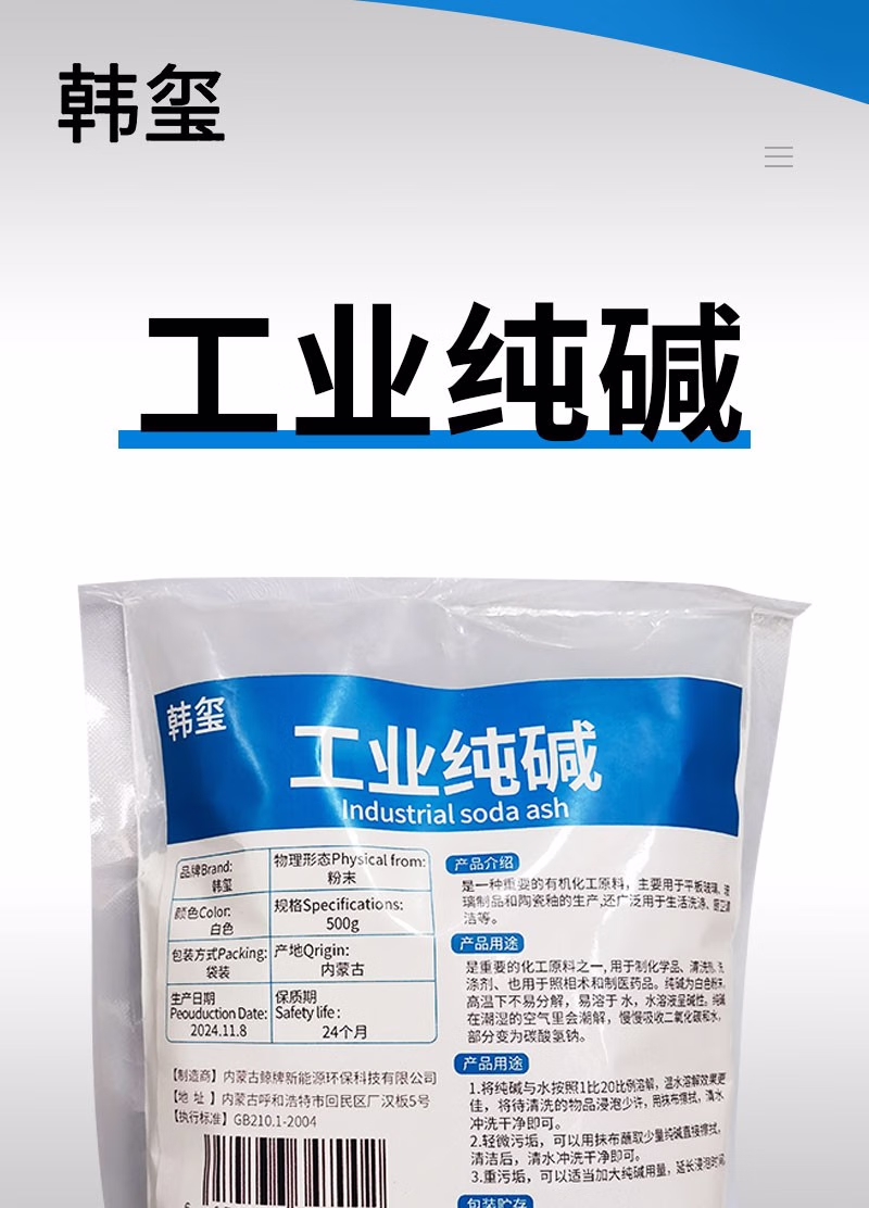 工业纯碱 碳酸钠去油污苏打粉 500g/袋