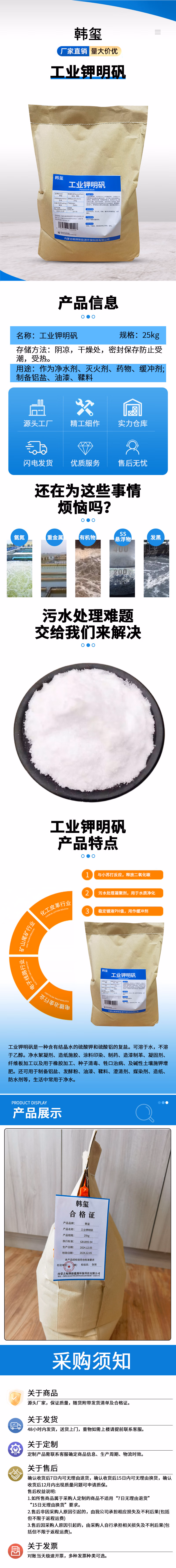 工业钾明矾 水处理澄清剂 25Kg 袋