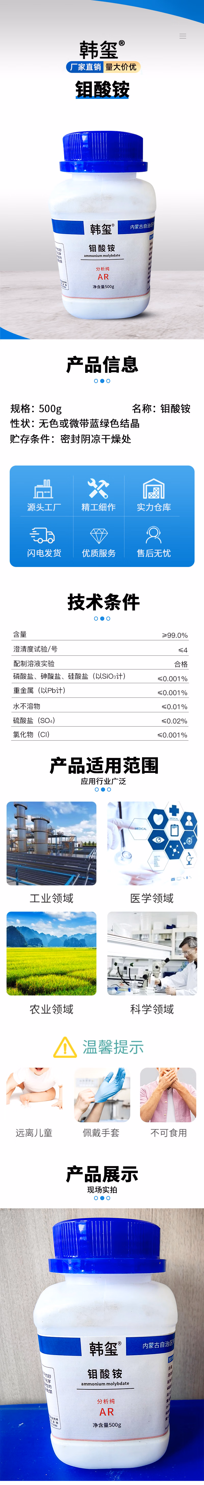 钼酸铵AR500g/瓶 371元/瓶