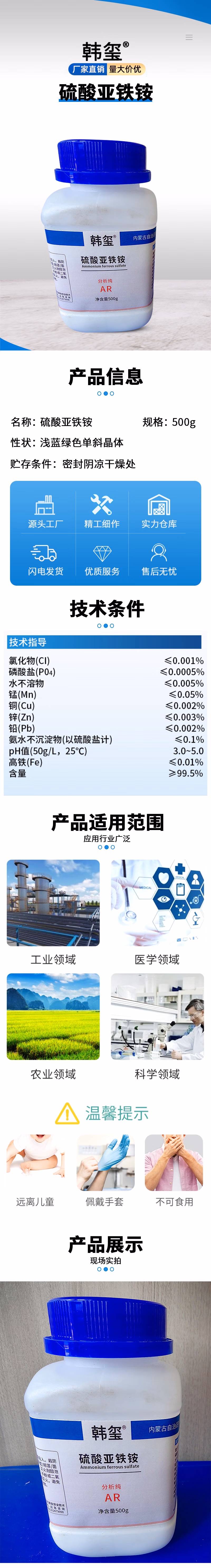 硫酸亚铁铵AR500g/瓶 39.9元/瓶