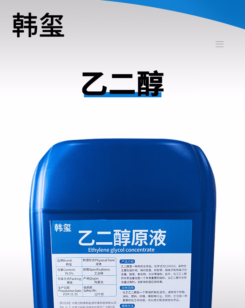 乙二醇原液 防冻液原料 含量≥95% 工业级 kg