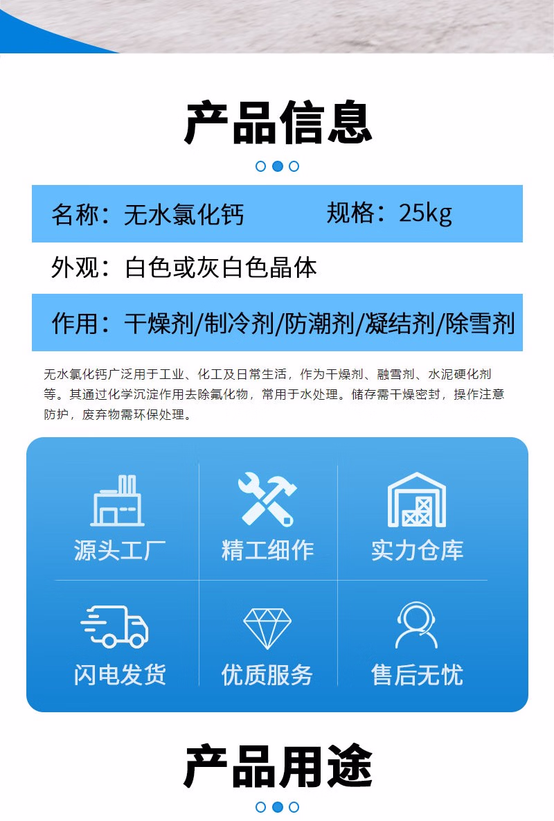 无水氯化钙 含量95% 融雪剂 干燥剂 25Kg/袋