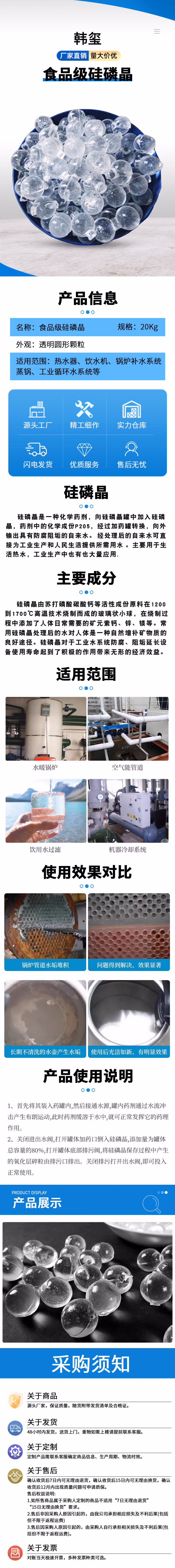 食品级硅磷晶 净水剂硅灵晶 除垢剂阻垢剂 20Kg/箱