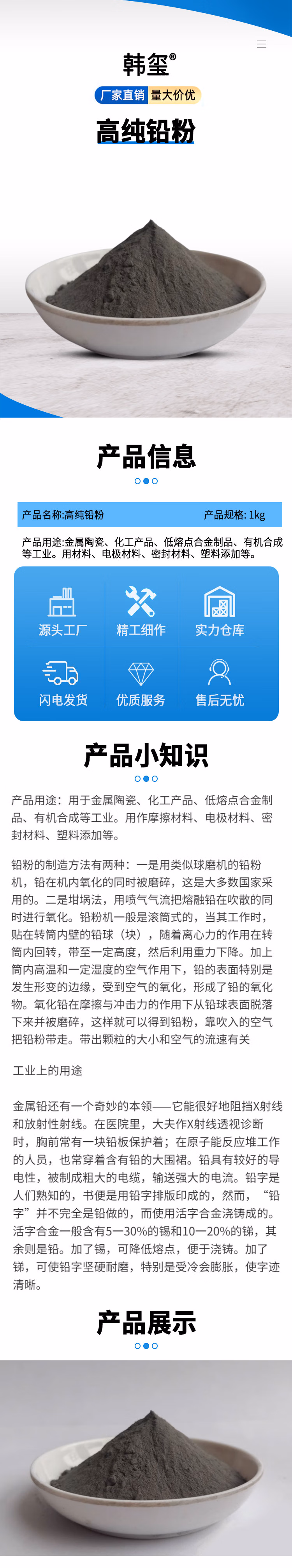 高纯铅粉 金属铅粉工业级微米铅粉末 98元/kg