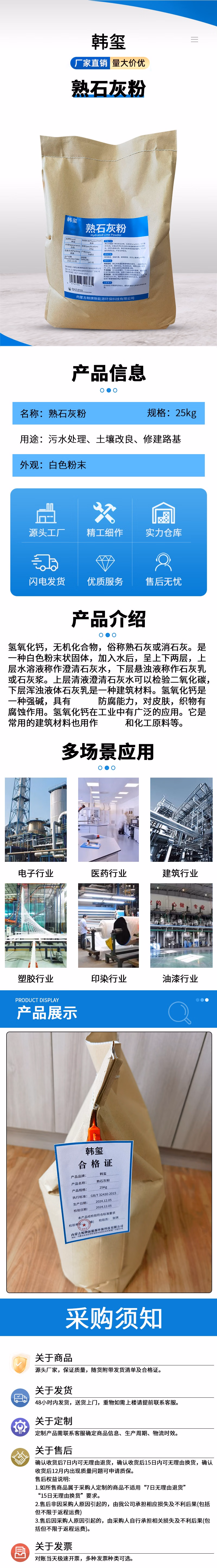 熟石灰粉 氢氧化钙 污水处理用熟石灰 25Kg/袋
